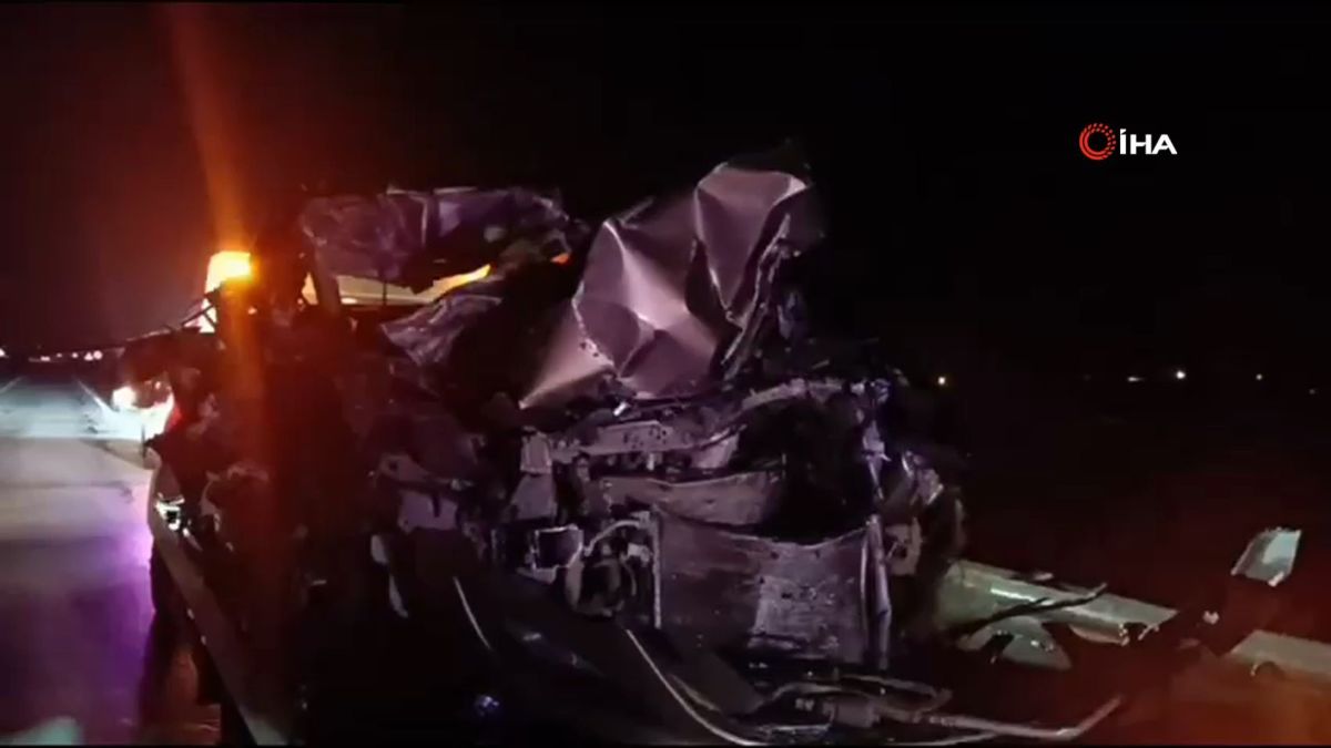 Afyonkarahisar’da kontrolden çıkan otomobil kamyonete çarparak hurdaya döndü