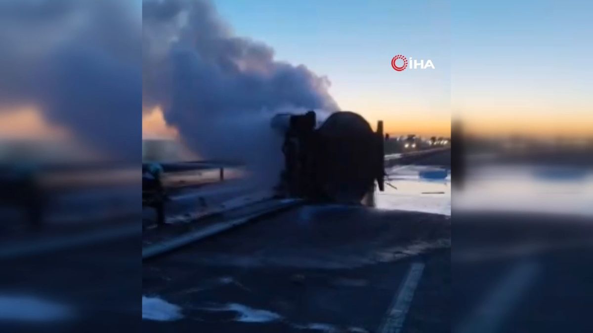 Mardin’de akaryakıt yüklü tankerin yanması sonucu şoför yaralandı.