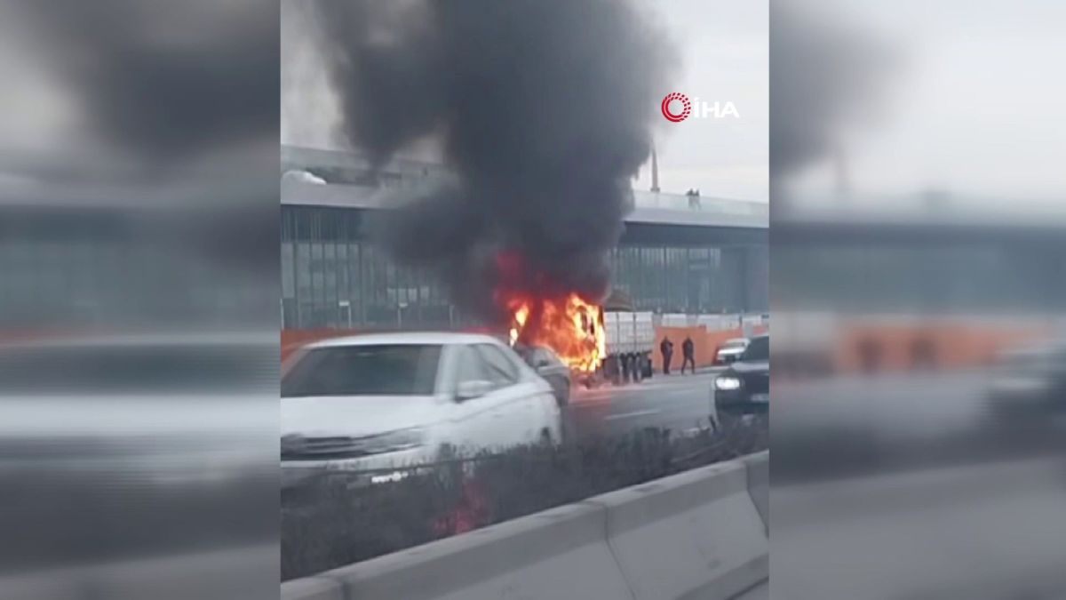 Ankara'da arızalanan kamyonun yandığı anlara ait görüntüler cep telefonu kamerasına yansıdı.
