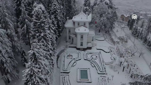 Atatürk Köşkü'ndeki kar manzarası dron ile görüntülendi