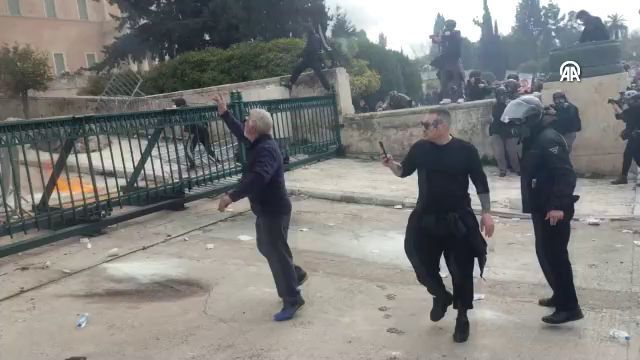 Atina'da düzenlenen gösteride polisle göstericiler arasında çatışma