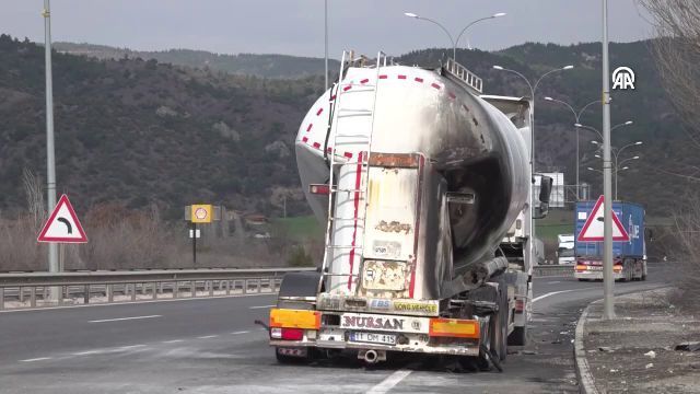Bilecik'te, seyir halindeyken yanan mikserde hasar meydana geldi.