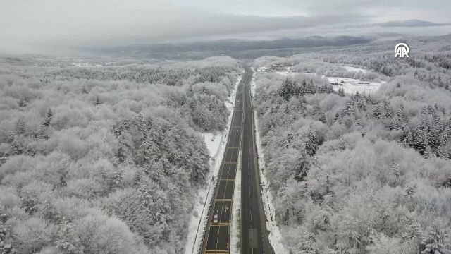 Bolu kent merkezi ve Anadolu Otoyolu'nun Bolu Dağı Tüneli kesiminde kar yağışı etkili oluyor. Beyaz örtüyle kaplanan D-100 kara yolunun Bolu Dağı kesiminde oluşan kış manzaraları havadan da görüntülendi.