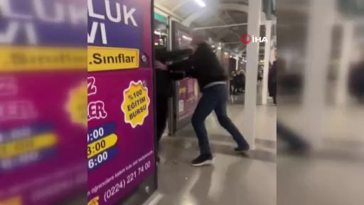 Bursa'da bir metro istasyonunda omuz atma meselesi yüzünden tartışan iki kişi istasyon içerisinde tekme tokat kavgaya tutuştu. Birbirine giren şahısları belediyenin temizlik görevlisi ayırdı.