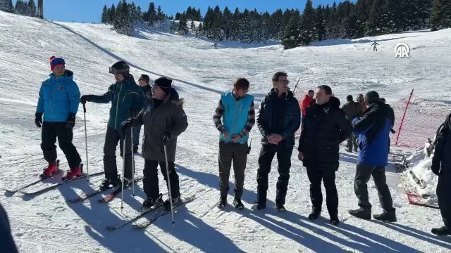 Bursa'da eğitim gören üniversite öğrencileri Gençlik ve Spor İl Müdürlüğü bünyesindeki Uludağ Gençlik Kampı'nda kayak öğreniyor.