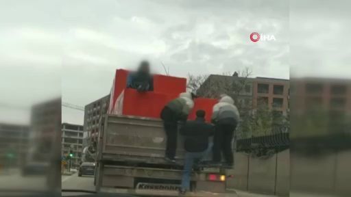 Bursa'da 3 genç, kamyonun arkasında canlarını hiçe sayarak seyahat etti. O anlar kameraya anbean yansıdı.