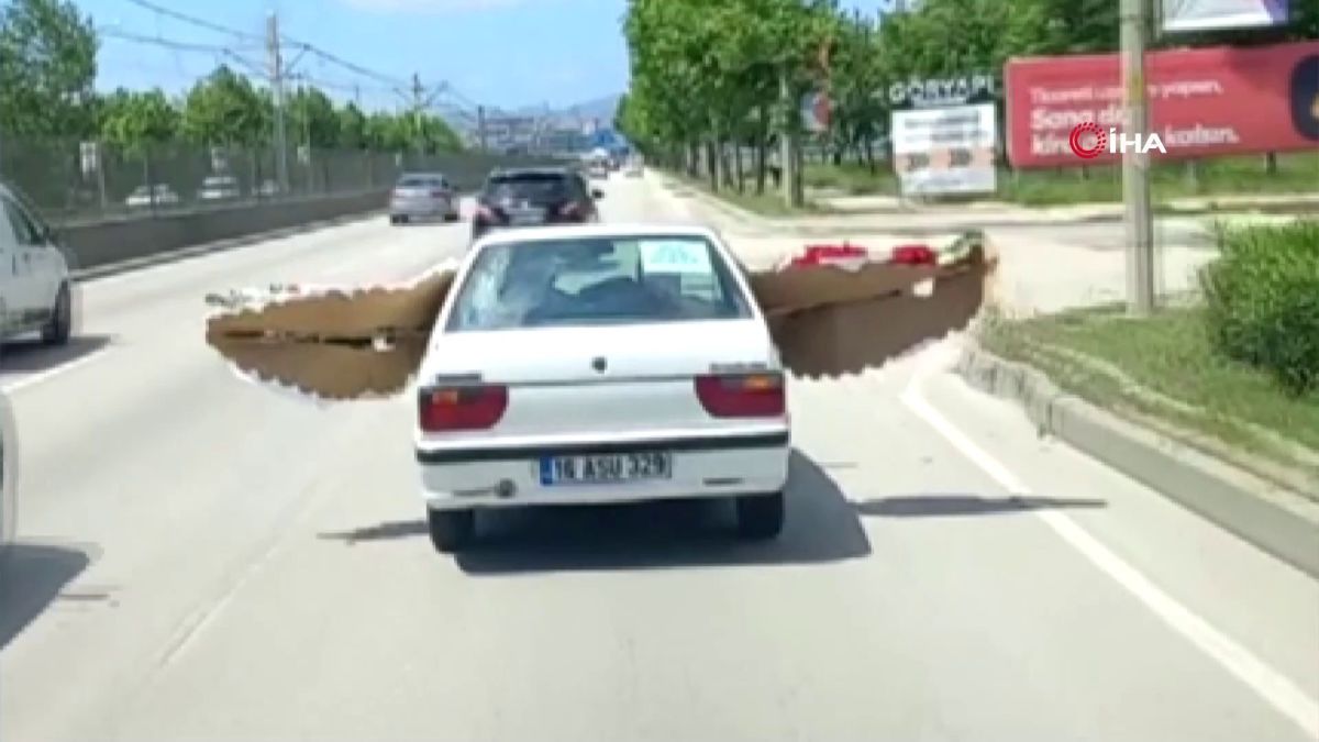 Bursa'da otomobille çelenk taşıyan sürücü kameraya yakalandı. Gündüz vakti otomobilin bir camından diğer camına çıkardığı çelenk ile şehir turu atan şahıs, trafikteki diğer sürücülerin güvenliğini hiçe saydı.