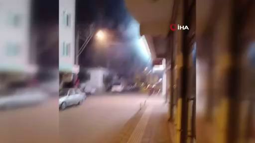 Bursa'da kısa devre yapan elektrik tellerinden çıkan kıvılcımlar, sokağı aydınlattı.