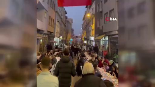 Bursa'nın Osmangazi ilçesi Zafer ve Namıkkemal Mahallesi'nde oturan gençler, 2 bin kişilik iftar verdi. İki mahallenin ortasındaki caddeye kurulan bir kilometreyi bulan devasa iftar sofrası dron ile görüntülendi.