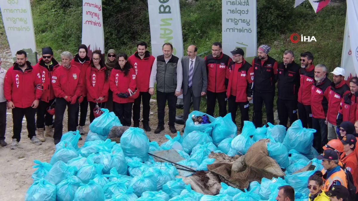 Tarım ve Orman Bakanlığı'na bağlı Orman Genel Müdürlüğü tarafından 81 ilde orman yangınlarını önlemek amacıyla düzenlenen "Orman Benim" kampanyasında ormana atılan çöpler toplandı.