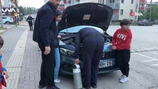 Bursa'da otomobil motoruna giren kedi için 2 saatlik mücadele