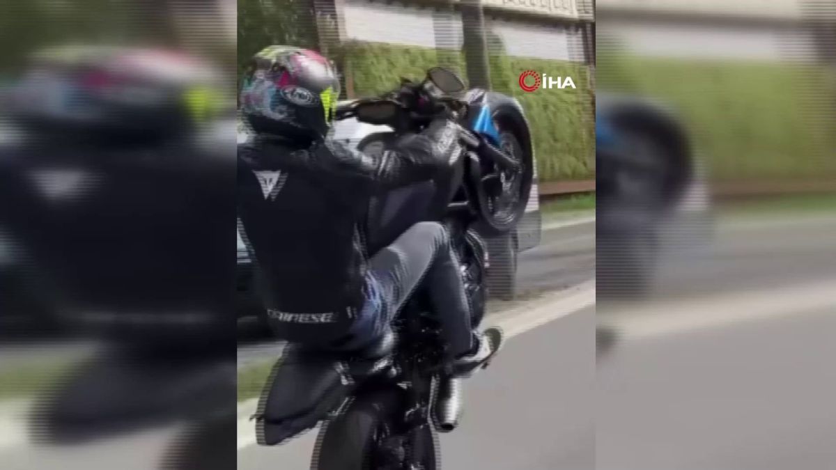 Bursa'da tek teker sürüş yapan motosikletli genç trafiği tehlikeye düşürdü.
