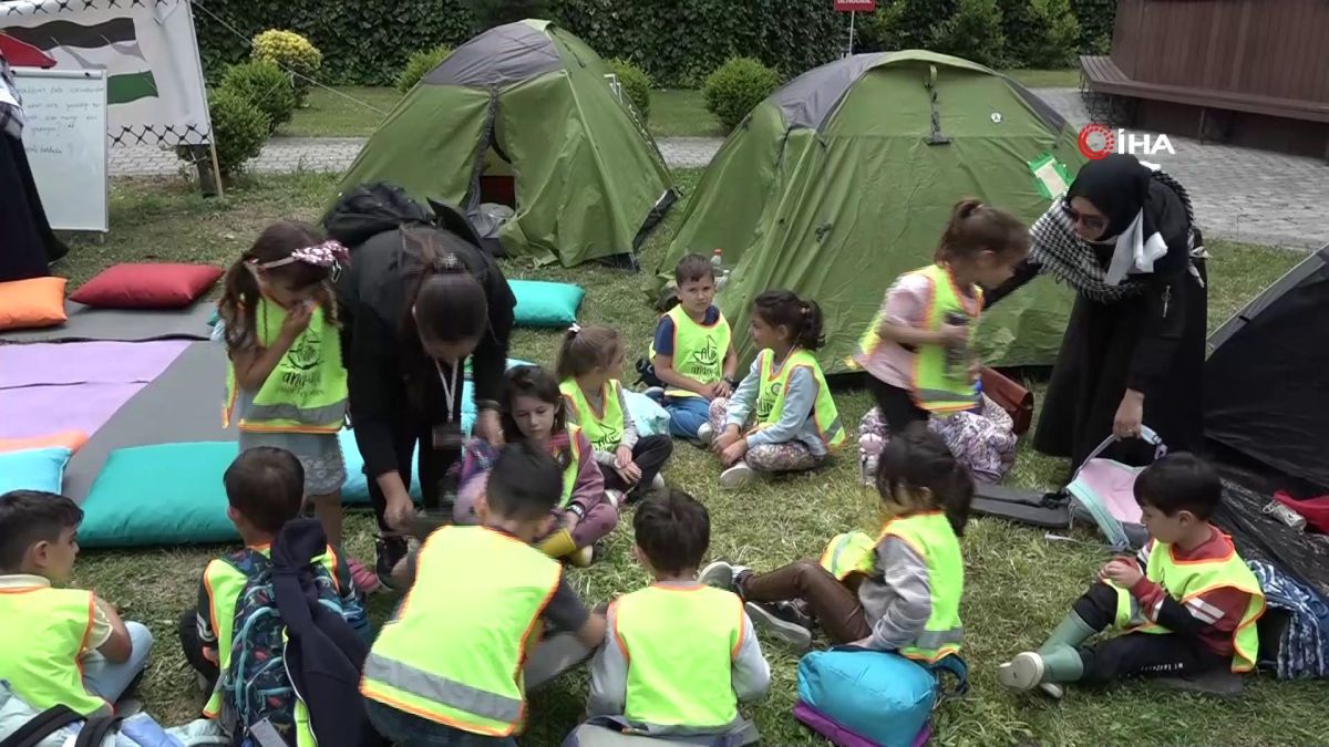 Bursa Teknik Üniversitesi öğrencilerinin, İsrail'in Filistin halkına yönelik aylardır düzenlediği saldırıları protesto etmek için kurdukları çadırlar, anaokulu öğrencileri tarafından ziyaret edildi.