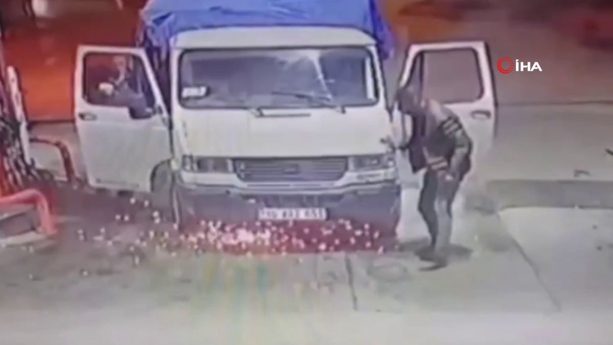 Bursa’da bir akaryakıt istasyonuna gelen kamyonet, yakıt aldığı esnada alev aldı. Durumu gören çalışan hemen aldığı yangın tüpüyle facianın önüne geçerken, o anlar güvenlik kamerasına anbean yansıdı.