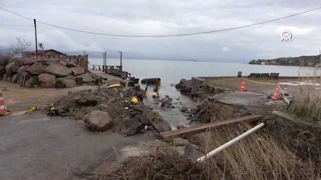 Çanakkale'nin Ayvacık ilçesinde etkili olan sağanak nedeniyle köprü çöktü.