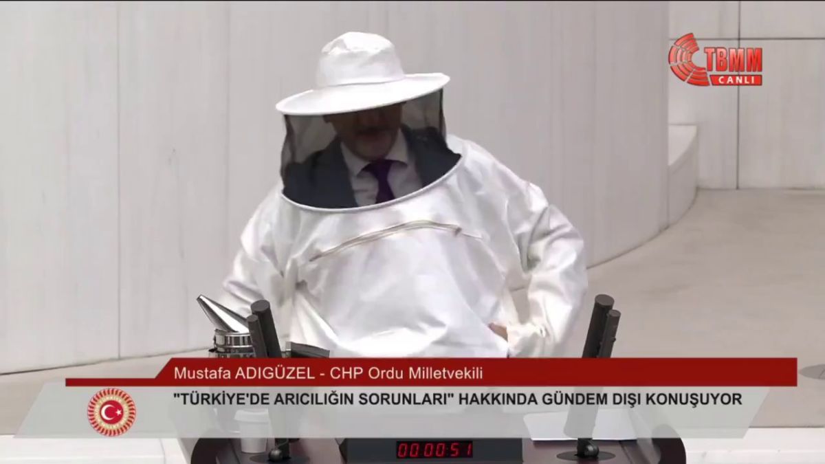 CHP Ordu Milletvekili Mustafa Adıgüzel, TBMM Genel Kurulu'nda arıcıların sorunlarını arıcı kıyafeti giyerek dile getirdi. Adıgüzel, "Hem üretim maliyetlerindeki artış hem de sahte bal, arıcılık sektörünü 3 yıldır sekteye uğramıştır" ifadelerini kullandı.