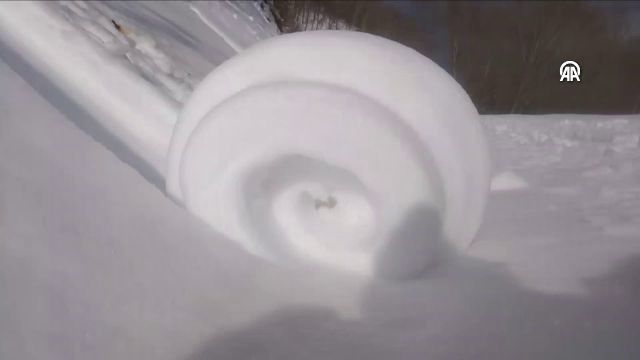 Amasya'nın Taşova ilçesinde, ender rastlanan bir doğa olayı olan kar ruloları görüldü.