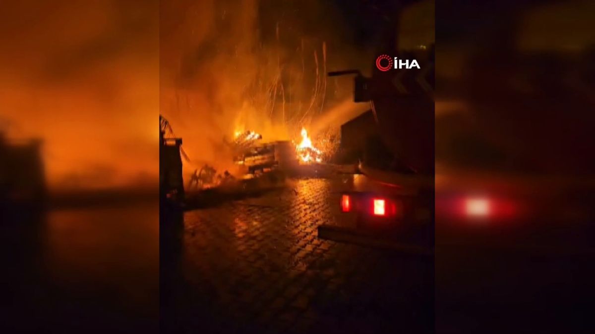 Antalya'da elektrik tellerinden çıkan kıvılcımlar iş yerinin önündeki palet ve palmiyeleri tutuşturdu. Çıkan yangın büyümeden söndürüldü.
