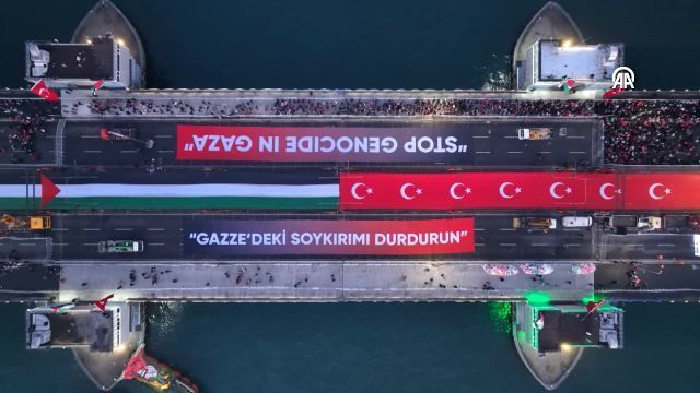 Milli İrade Platformunca, Filistin'deki katliamın durdurulması amacıyla yaklaşık 400 sivil toplum kuruluşunun iştirakiyle düzenlenen eylem için sabah namazında camilerde bir araya gelen on binlerce katılımcı, kortejle Galata Köprüsü'ne yürüyüşe başladı.