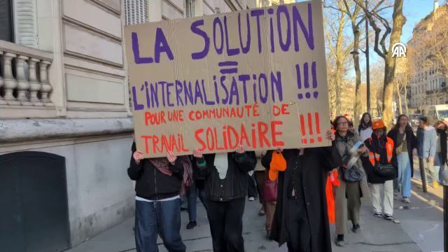 Fransa'nın başkenti Paris'te, Sciences Po Paris Üniversitesi'nde temizlik işçileri, düşük maaşlar ve kötü çalışma koşullarını protesto etmek amacıyla greve gitti. Temizlik işçilerinin protestosuna üniversite öğrencileri de destek verdi.