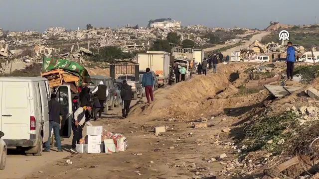 Gazze'de, İsrail'in saldırıları nedeniyle zorla yerinden edilen on binlerce Filistinli, güneyden kuzeydeki topraklarına, Selahaddin Caddesi üzerinden araçlarıyla dönmeye devam ediyor.