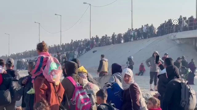 İsrail’in yerinden ettiği yüzlerce Filistinli, güney bölgelerden Gazze Şeridi'nin batısında bulunan sahildeki er-Raşid Caddesi üzerinden Gazze’nin kuzeyindeki evlerine geri dönmeye başladı.