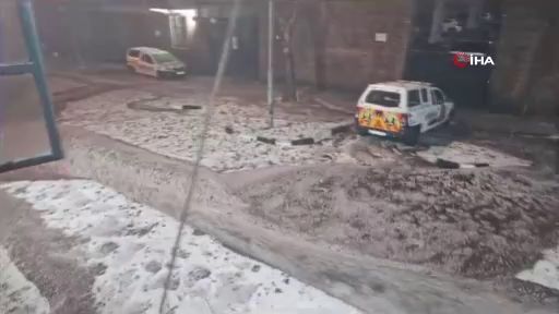 Güney Afrika Cumhuriyeti’nde ceviz büyüklüğündeki şiddetli dolu yağışı nedeniyle sokaklar beyaza büründü.