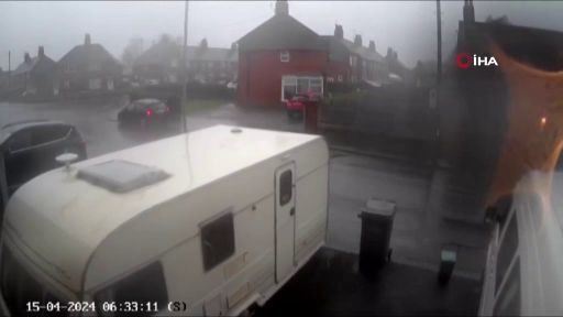 İngiltere'de şiddetli fırtına karavanı uçurdu!