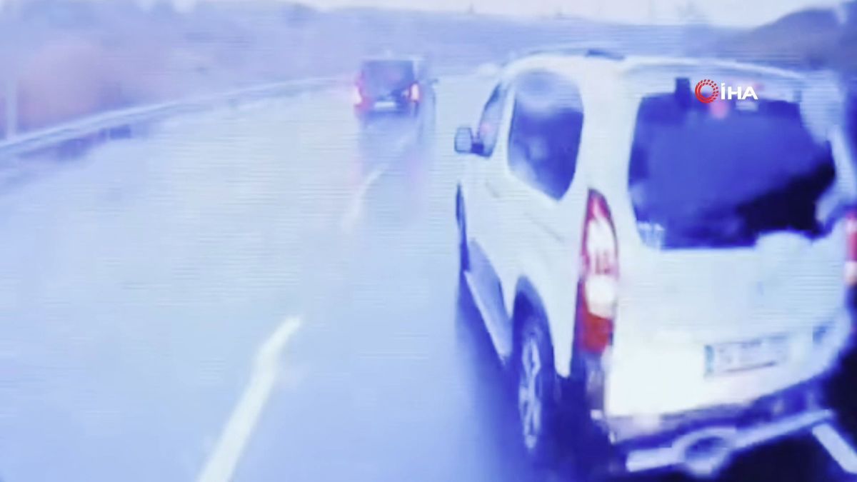 İstanbul Havalimanı Yolu'nda, otoyol kenarında duraksayarak park eden araçlar kazalara davetiye çıkarıyor. Araç kamerası tarafından kaydedilen görüntülerde bir servis aracıyla hafif ticari aracın kazadan kıl payı döndüğü anlar böyle görüntülendi.