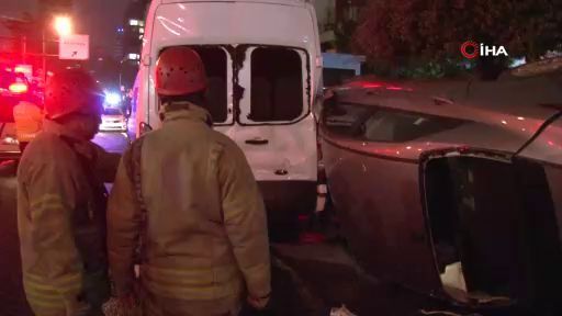Sarıyer’de gece saatlerinde kontrolden çıkan otomobil önce doğal gaz kutusuna çarptı, daha sonra park halindeki servis minibüsüne çarparak yan yattı. Kazada 2 kişi yaralandı.