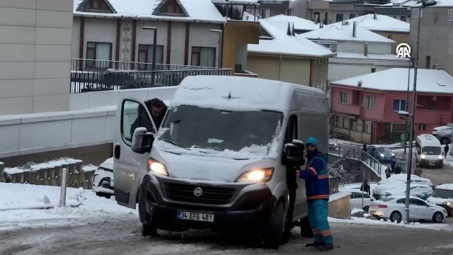 İstanbul'da kar yağışının etkisiyle bazı bölgelerde trafik yoğunluğu oluştu.