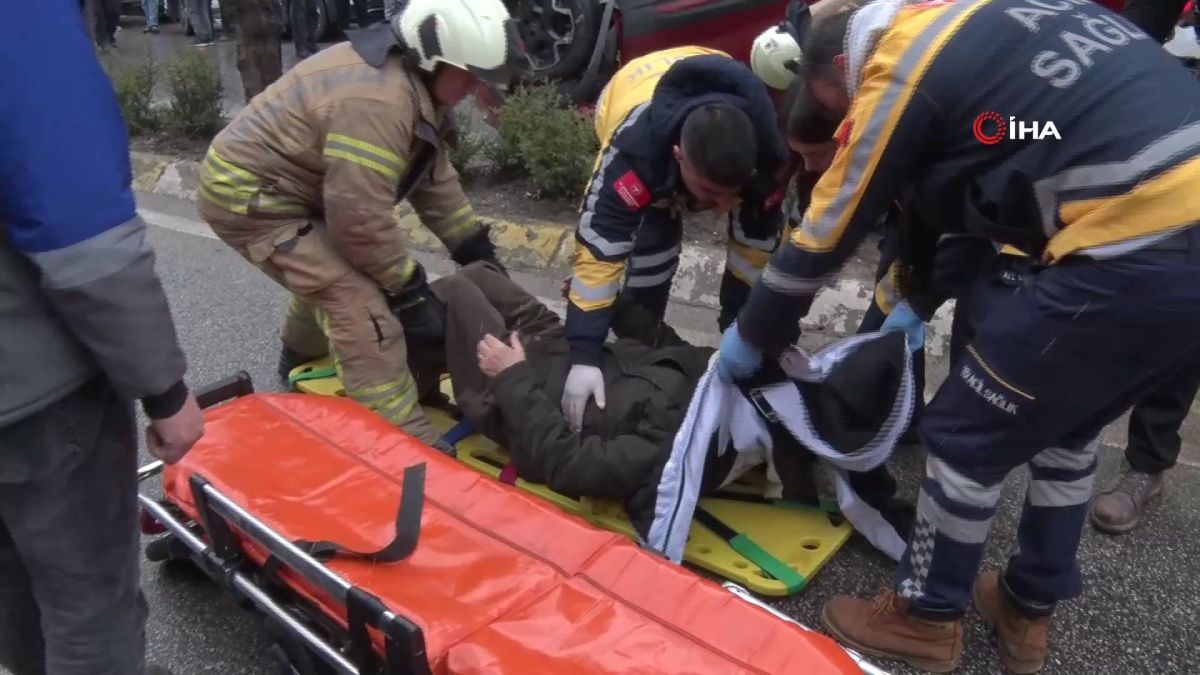 İstanbul'da seyir halindeyken park halindeki hafif ticari araca çarpan otomobil takla attı. Otomobilin sürücüsü araçta sıkışarak yaralandı. O anlar güvenlik kamerasına yansıdı.