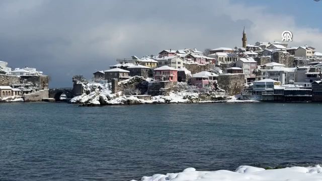 UNESCO Dünya Miras Geçici Listesi'ne 2015'te eklenen Bartın'ın Amasra ilçesi, kar yağışıyla beyaza büründü.