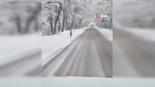 Karla kaplı yolda koşan karaca vatandaşın kamerasına yansıdı