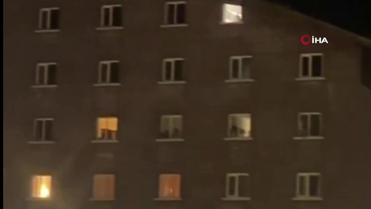 Bolu Kartalkaya Kayak Merkezi'nde 10 kişinin öldüğü 32 kişinin yaralandığı oteldeki ateşten kurtulmak isteyen bir kişi, çarşafları birbirine bağlayarak pencereden atladı. O anlar saniye saniye kameraya yansıdı.