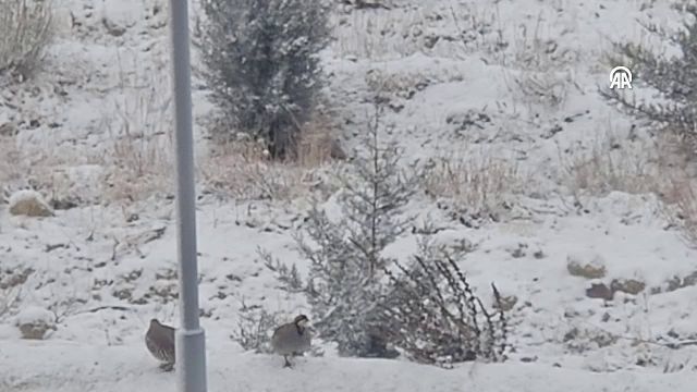 Keklikler karlı arazide yiyecek ararken görüntülendi