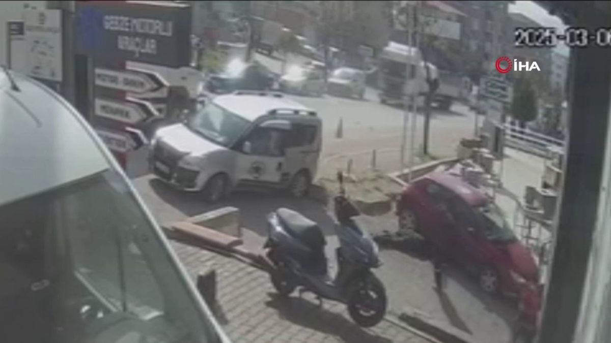 Kocaeli'de kamyon ile çarpıştıktan sonra savrulan hafif ticari araç yayaya çarptı. Yayanın hayatını kaybettiği kaza, saniye saniye güvenlik kamerasına yansıdı.