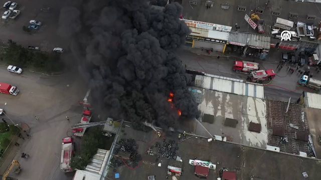 Bursa'nın merkez Yıldırım ilçesinde bulunan sanayi sitesinde madeni yağ satışı yapılan iş yerinde çıkan yangın, söndürülmeye çalışılıyor.