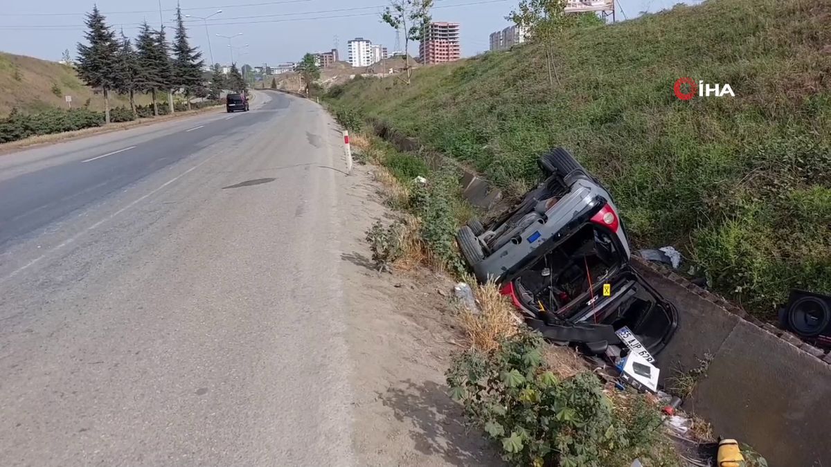 Samsun'da yoldan çıkan otomobilin su kanalına devrilmesi sonucu meydana gelen trafik kazasında 3 kişi yaralandı.