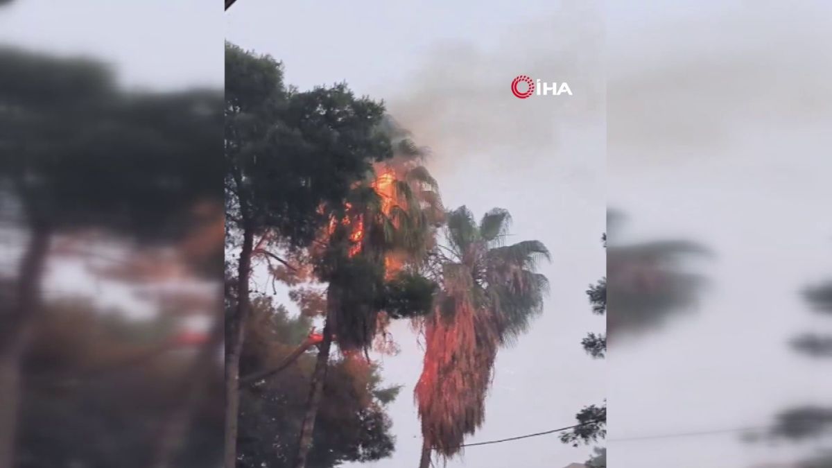 Şanlıurfa’da yıldırımın düştüğü ağaç alev alırken üzerindeki kuşlar ise telef oldu.