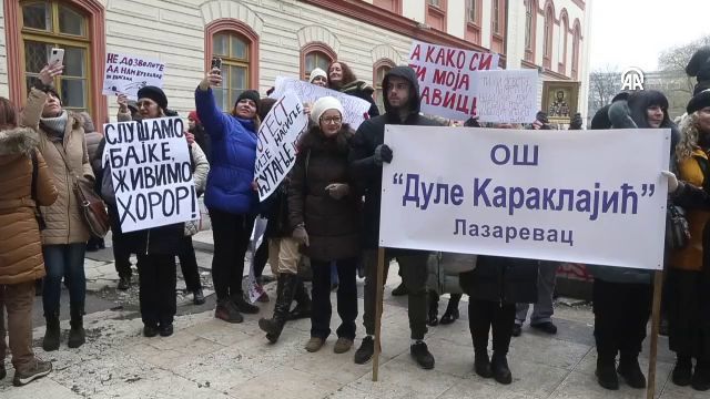 Sırbistan'ın başkenti Belgrad'da maaşları ve çalışma şartları nedeniyle iş bırakma eylemi yapan öğretmenler, eğitim sektöründeki şartları protesto etmek için gösteri düzenledi.