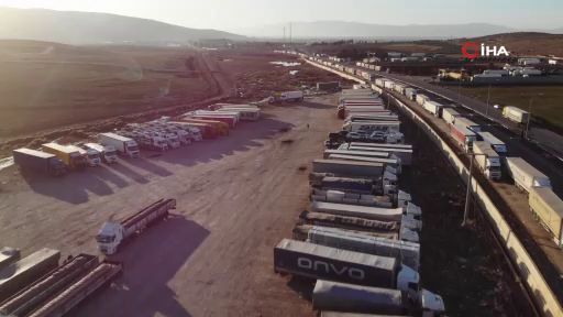 Suriye'de 61 yıllık Baas rejiminin devrilmesinin ardından ithal ürün yasağının kalkmasıyla birlikte Hatay'dan Suriye'ye giden tırların oluşturduğu kilometrelerce kuyruk dron ile havadan görüntülendi. Suriye tarafında artan vergiler zaman zaman soruna neden olsa da araçların geçişi sürüyor.