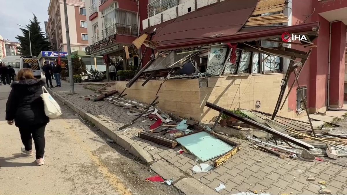 Tokat’ta rampada park halindeki bir minibüs kayarak bir iş yerine girdi.