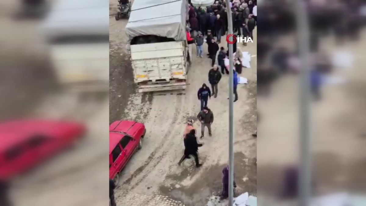 Erzurum'da yardım dağıtımı sırasında vatandaşlar tekme tokat birbirine girdi. O anlar ise saniye saniye kameralara yansıdı.